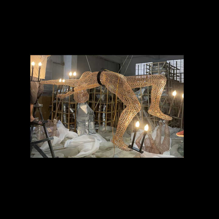 Calze a rete luci a sospensione scultura statua ginnastica atleta lampadario anima atmosfera traslucida illuminazione d'atmosfera