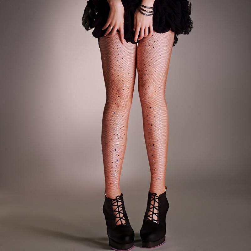 Fishnet Tights Woman Leggings Tube Pantyhose Tights with Shiny Star Knitted Crystal Color Wool / Spandex