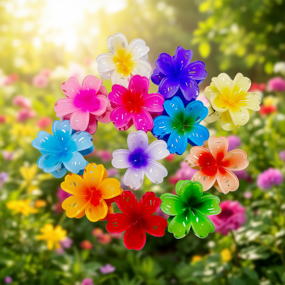 Fermaglio per capelli Angelina a cinque petali, 7,5 cm, colorato, per donne e ragazze