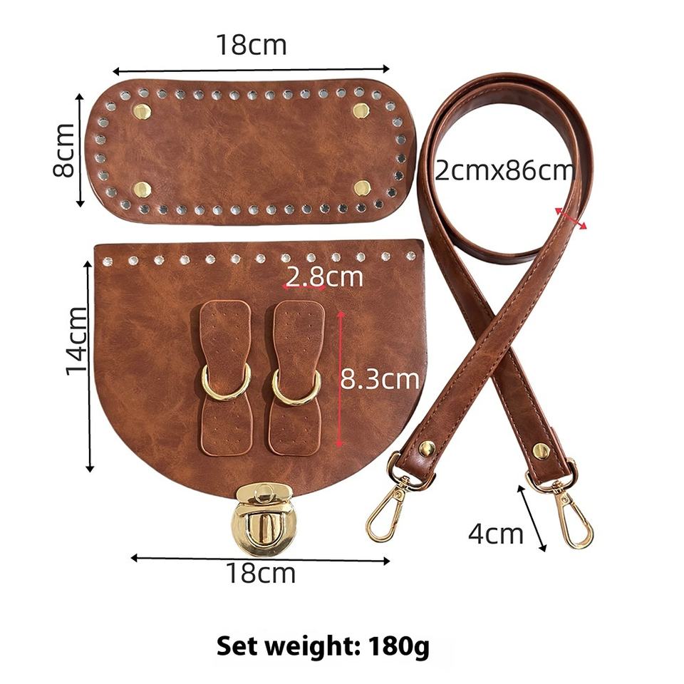 Five-Piece DIY Retro Leather Accessories Set Hand-Woven Backpack Bag Bottom Shoulder Strap Cover Buckle Personalized Bag