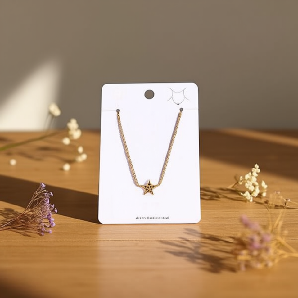 Collana Angelina con Stella a Cinque Punte in Acciaio Inossidabile Placcato Oro, Gioiello Unisex Casual da Regalo