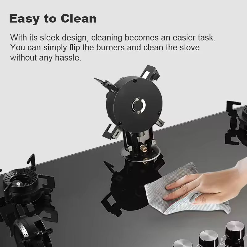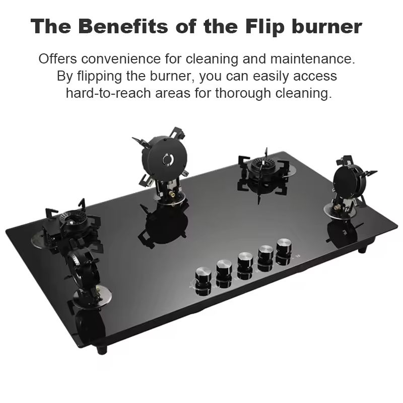 Piano cottura a gas da incasso a cinque fuochi con superficie in vetro temperato nero e 5 bruciatori Smart Gas Stove