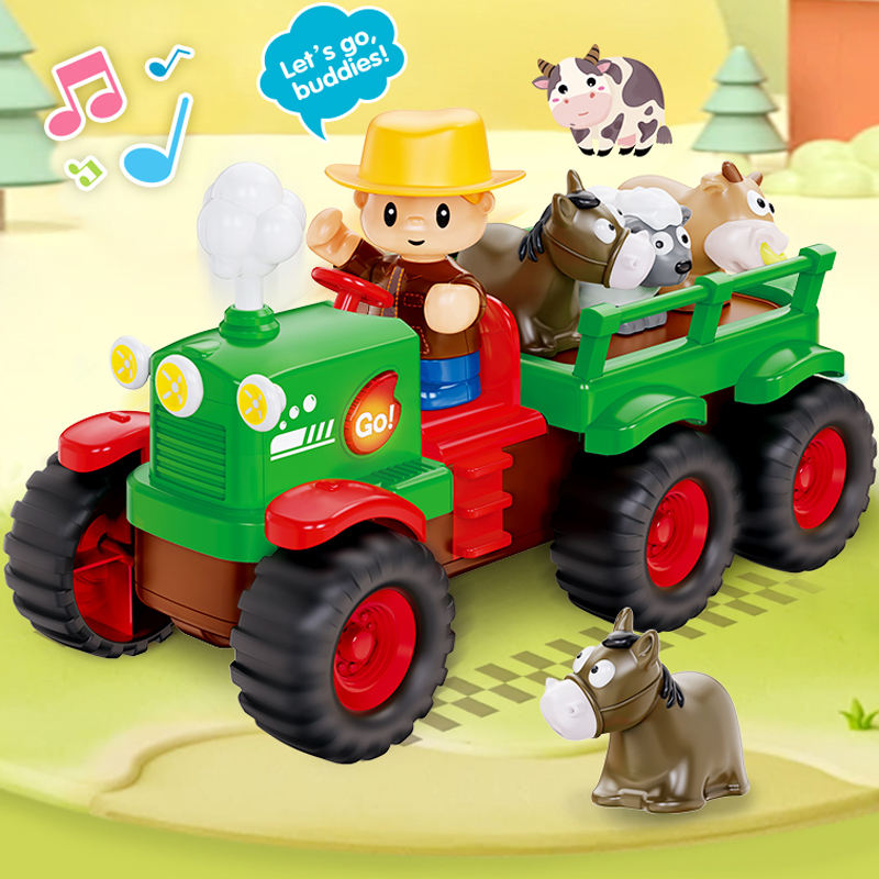 FiveStar Factory New Arrival Fun Kids Plastic Toy Farmer Truck Trailer with Sound Animal Tractor Toy Other Toy Vehicles