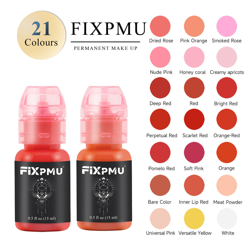 Inchiostro Organico per Micropigmentazione Fixpmu 15ml per Sopracciglia e Labbra, Trucco Permanente, Microblading, Tatuaggio, 21 Colori Disponibili