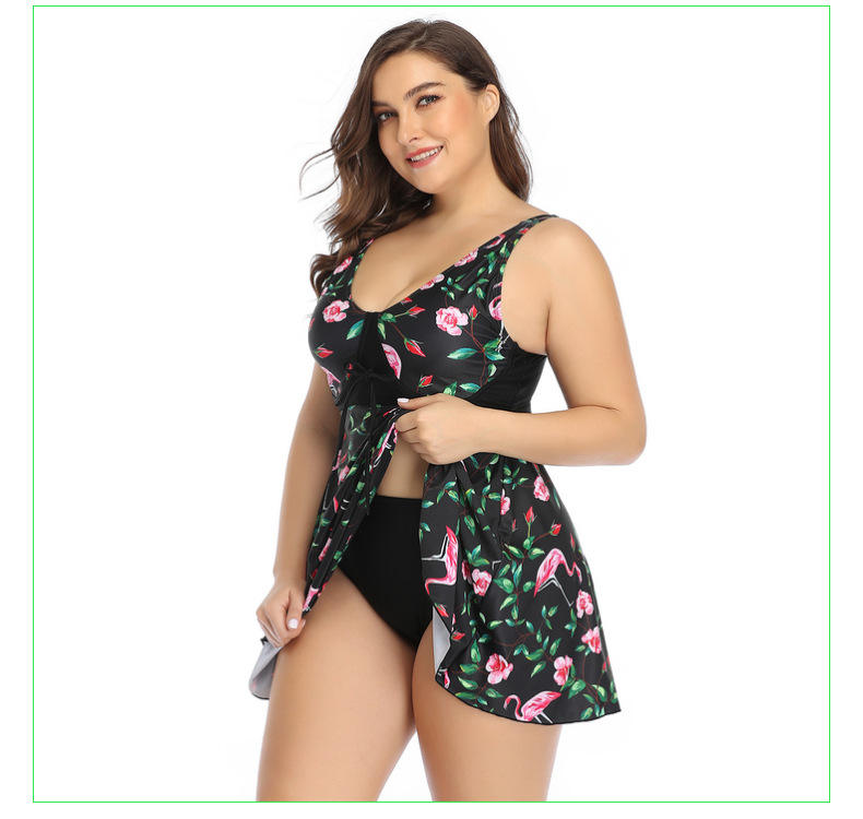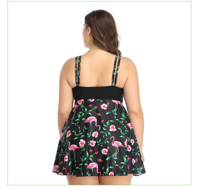 Flamingo Print Swimdress Black Two Pieces Women Tankini Plus Size Vintage Swimming Suit Big Swimsuit With Pants 2024 Beachwear
