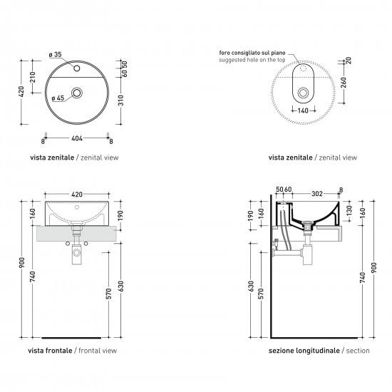 Flaminia Modern 42 Countertop Washbasin Twin Set Slim Oval Tempered Glass Stone Bathroom Sinks for Hand Wash in Hotels