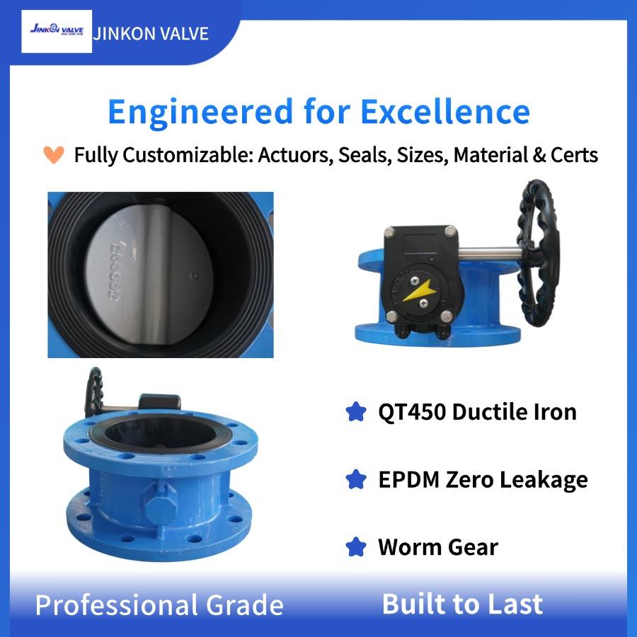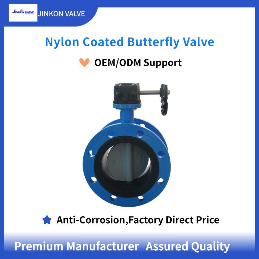 Valvola a Farfalla Flangiata in Ghisa Sferoidale con Disco Rivestito in Nylon e Guarnizione EPDM, Standard DIN ANSI JIS, Valvola Industriale