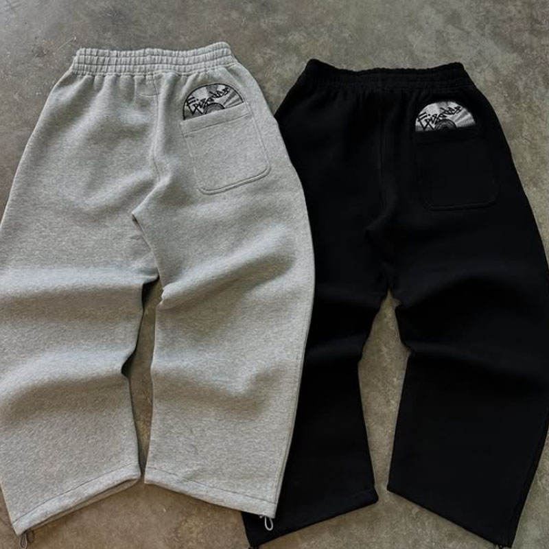 Pantaloni sportivi da uomo in cotone con taglio svasato spesso grigio elastico con cintura regolabile e pesante