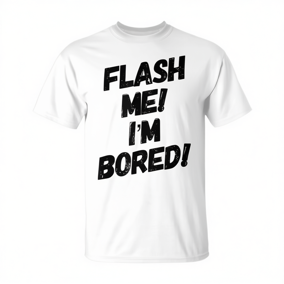 T-shirt Flash Me I'm Bored con umorismo per adulti, manica corta, girocollo, in cotone, unisex, promozionale