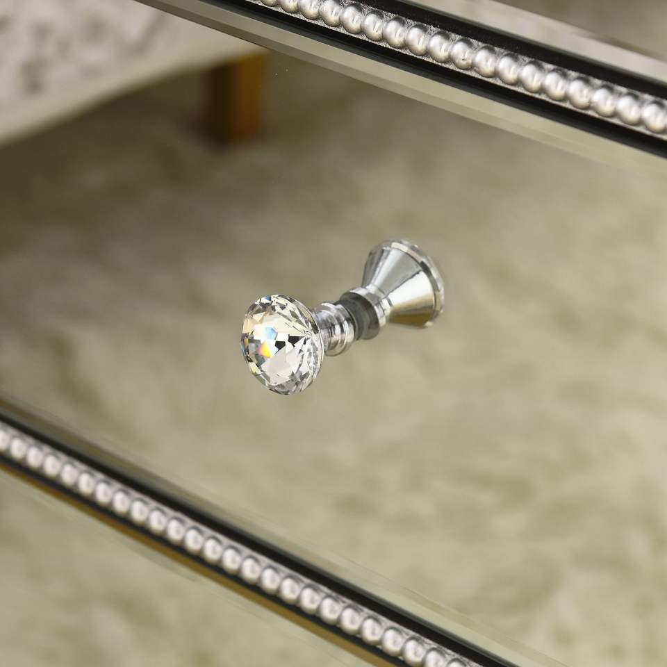 Comodino Flash Silver Mirror con tre cassetti, 22 pollici di larghezza x 16 pollici di profondità x 26,8 pollici di altezza