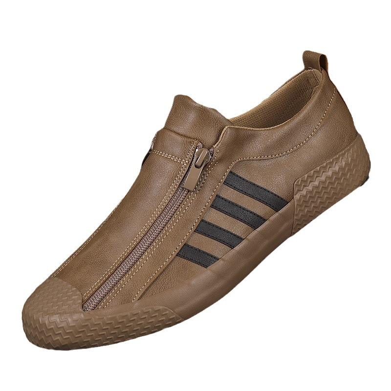 Flash Step Casual Running Sneakers 2025 Autumn Men's Shoes White Zipper Breathable Shell Head Microfiber Cotton Leather Logo