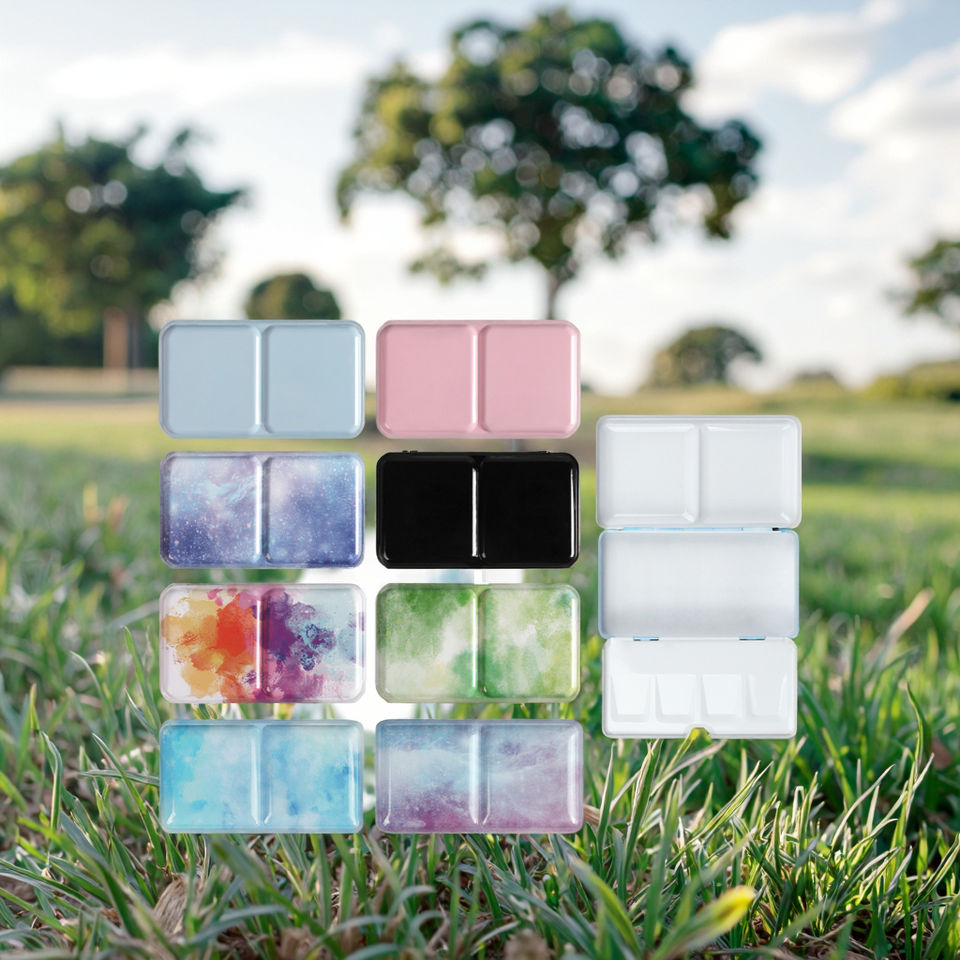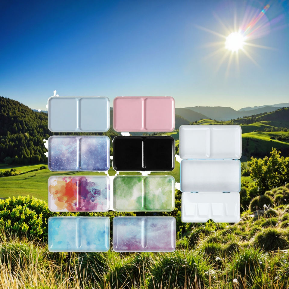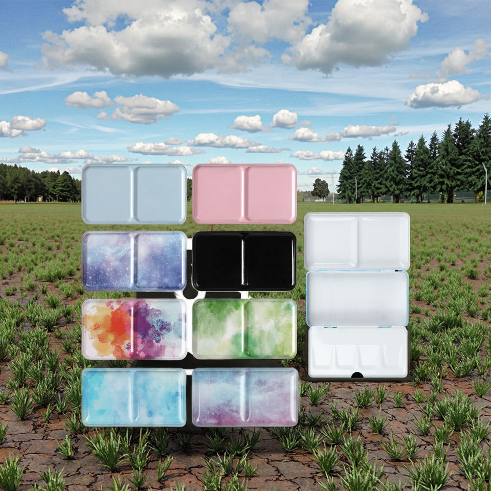 Fondo piatto in metallo rettangolari scatola di vernice acquerello scatola di latta pieghevole per mezze padelle vuota Aquarell scatola di latta