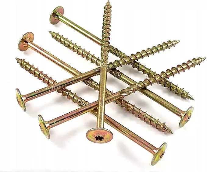 Viti per Legno con Testa Piatta Flangiata, Testa Tonda, Zincate Gialle, Torx, per Carpenteria, Costruzioni, Tetti e Capriate