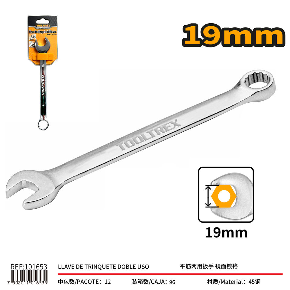 Flat Rib Combination Wrench Set 19mm Mirror Chrome Adjustable Open End and Oil Filter Wrench Spanners for DIY