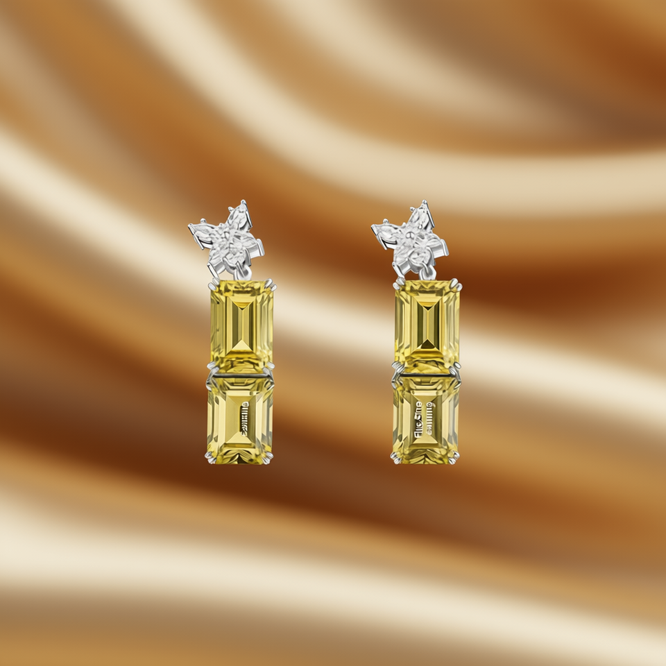 Orecchini Pendenti di Lusso Fle She con Diamanti Gialli, Oro Massiccio 18K, Taglio Smeraldo a Forma di Fiore, Gioielli da Sposa per Donne