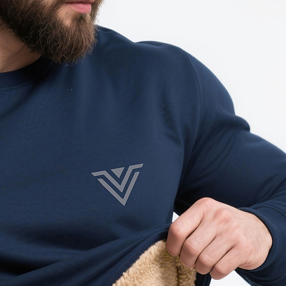 Fleece Lined Men's Autumn Winter Crew Neck Short-Sleeved T-Shirt Loose T-Shirt Neck Breathable
