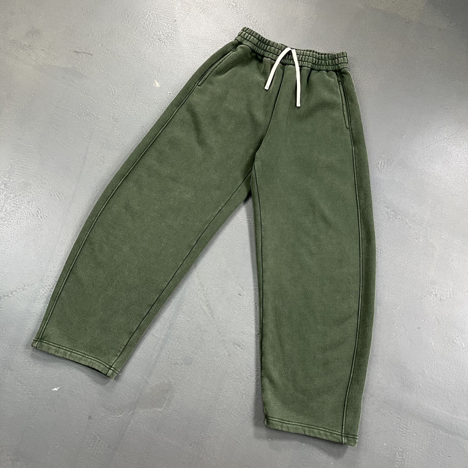 Fleece Thickened Men's Pants Snow Washed Curved-Leg Wide-Leg Washed Blank Custom Embroidery Puff Heavyweight Baggy Track Pants