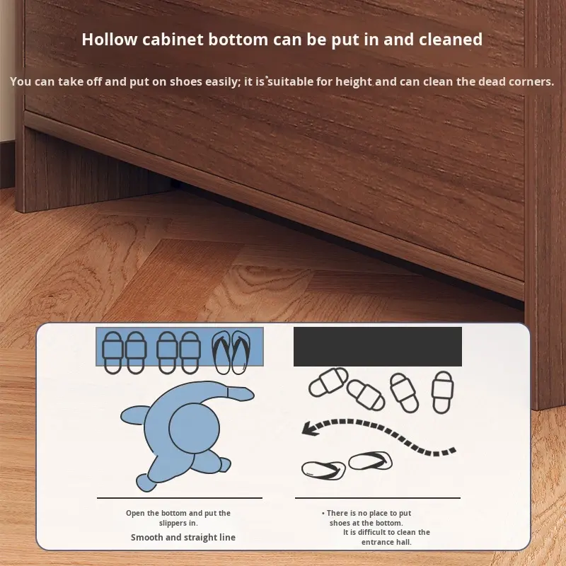 Design ultrapiatto: Il design ultrapiatto assicura che l'armadietto per scarpe occupi uno spazio minimo, rendendolo ideale per piccoli appartamenti o corridoi stretti.