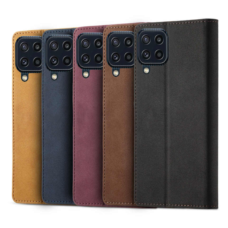 Flip Case per Samsung M32 4G Vintage PU Leather Wallet Card Slot Holder View Stand Cover Mobile per Galaxy M32 4G