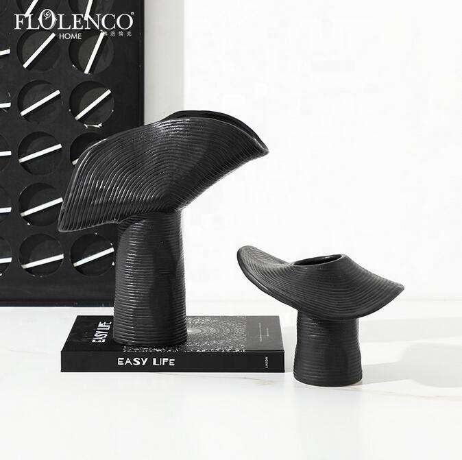 Flolenco decorazione per la casa oggetti da salotto oggetti decorazione in ceramica nera vaso moderno minimalista decorativi vasi di fiori in ceramica