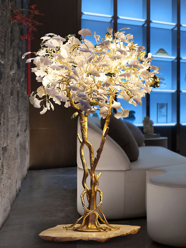 Lampada da terra oro ottone con tavolo Led Torchiere albero Art Deco luminoso grande Comfort visivo camera da letto in piedi lampada da terra