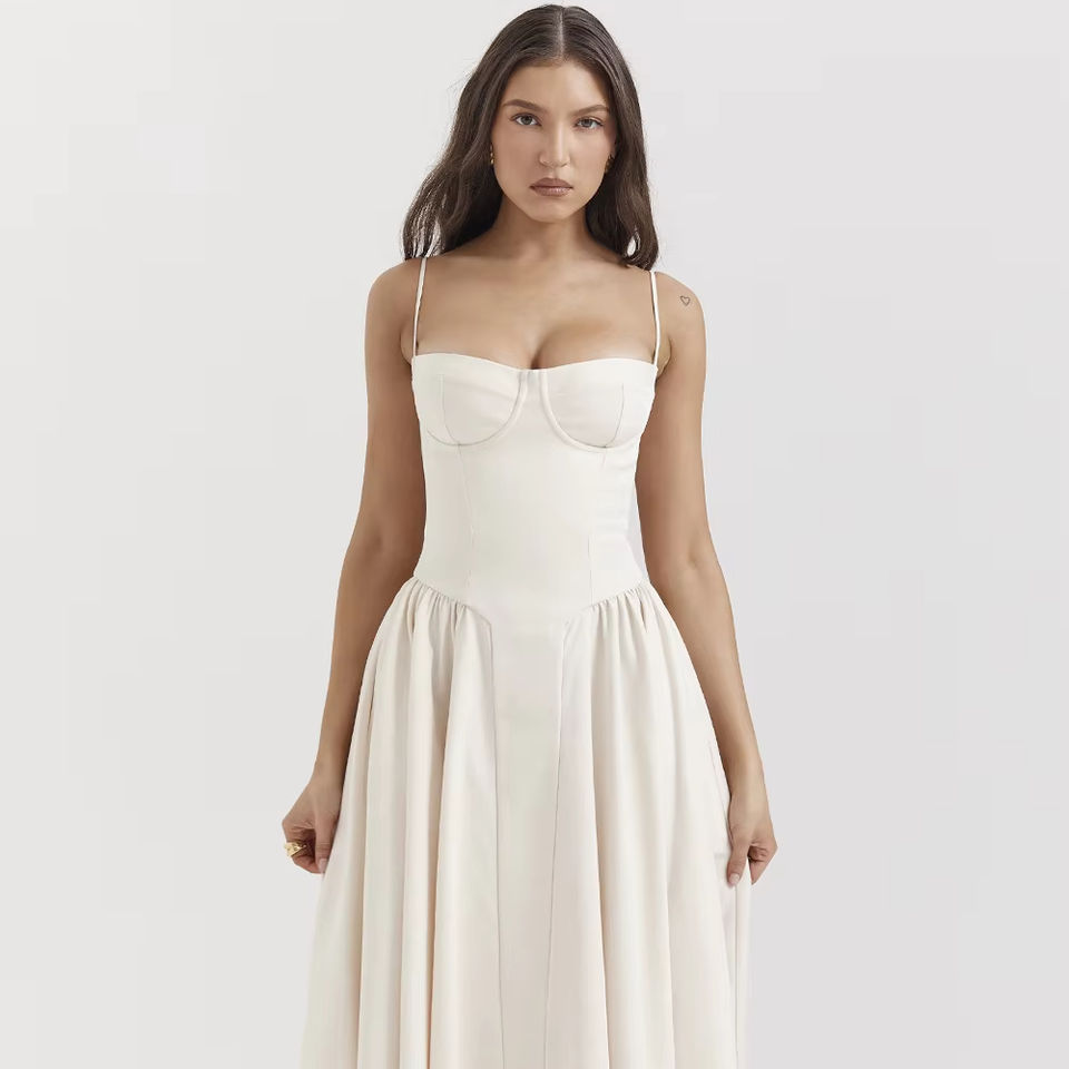 Gonna Lunga Nuova Stile Retrò Francese da Donna con Spalline Sottili Tinta Unita Casual Naturale Lavabile a Linea A