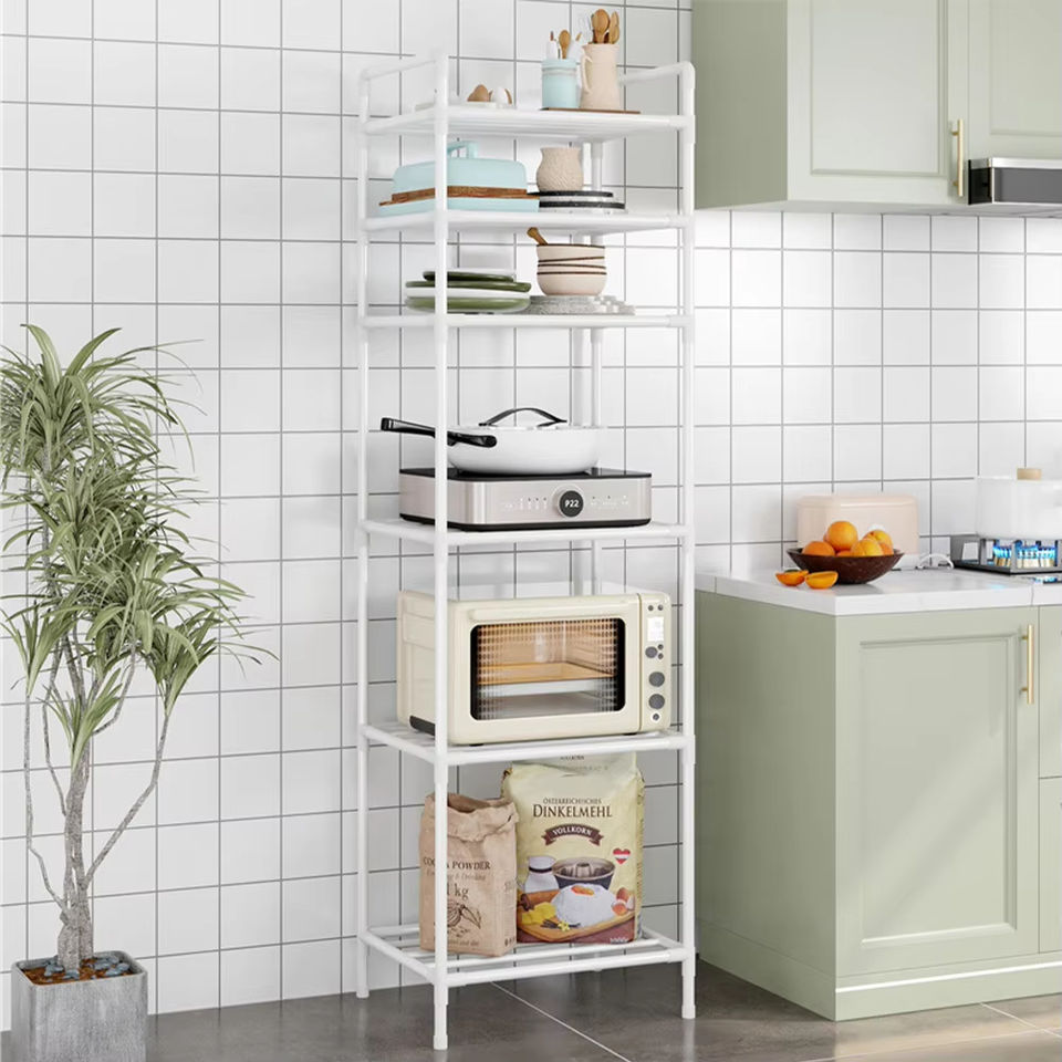 Scaffale porta microonde da terra a più livelli con carrello a rotelle, scaffale da cucina senza foratura