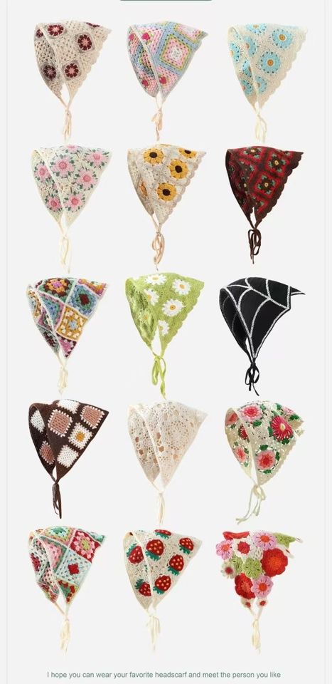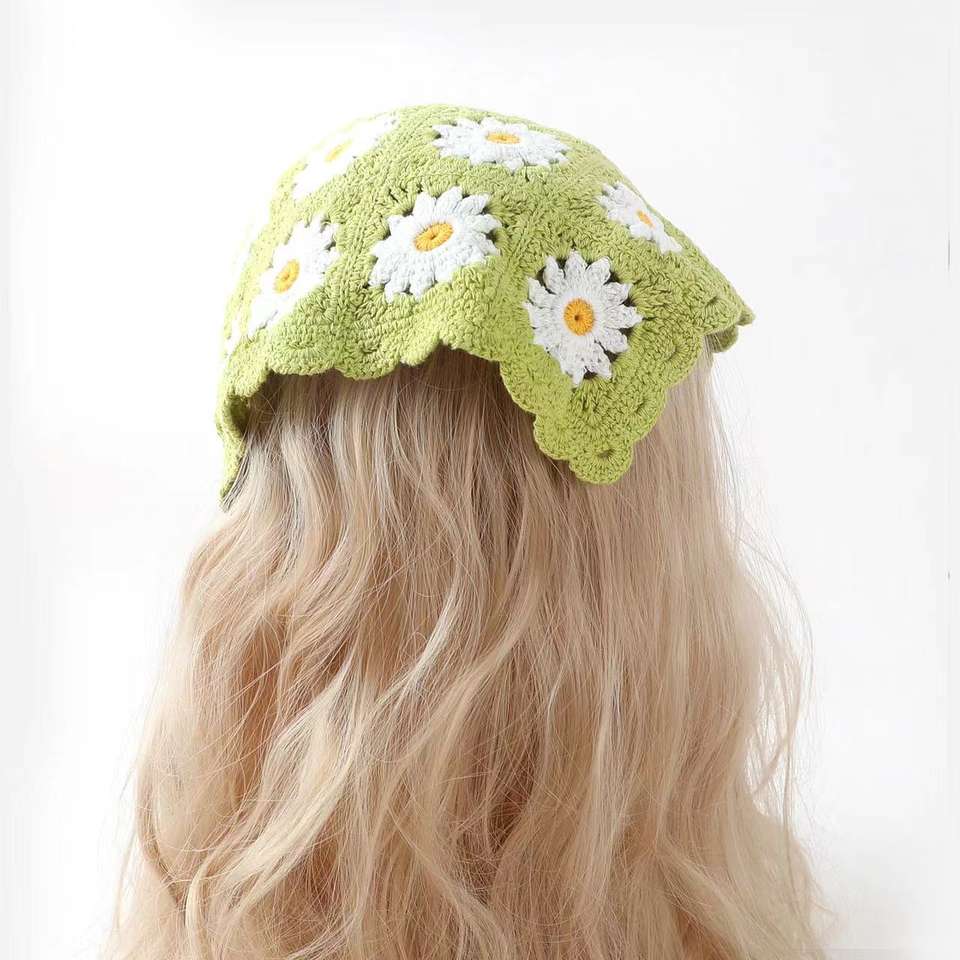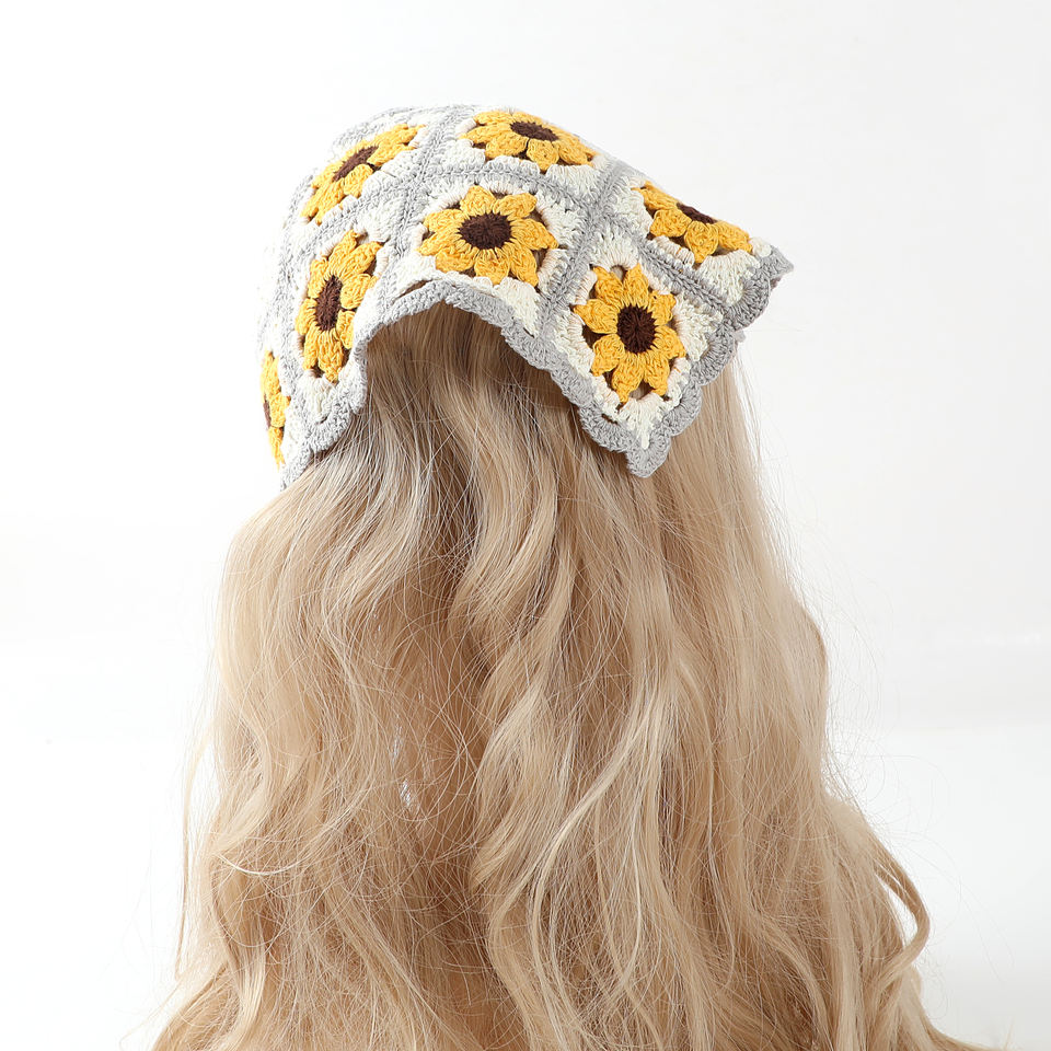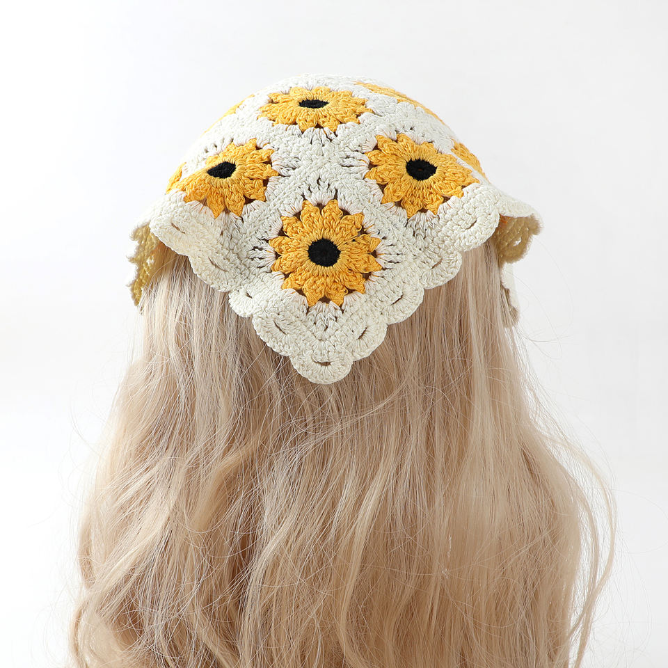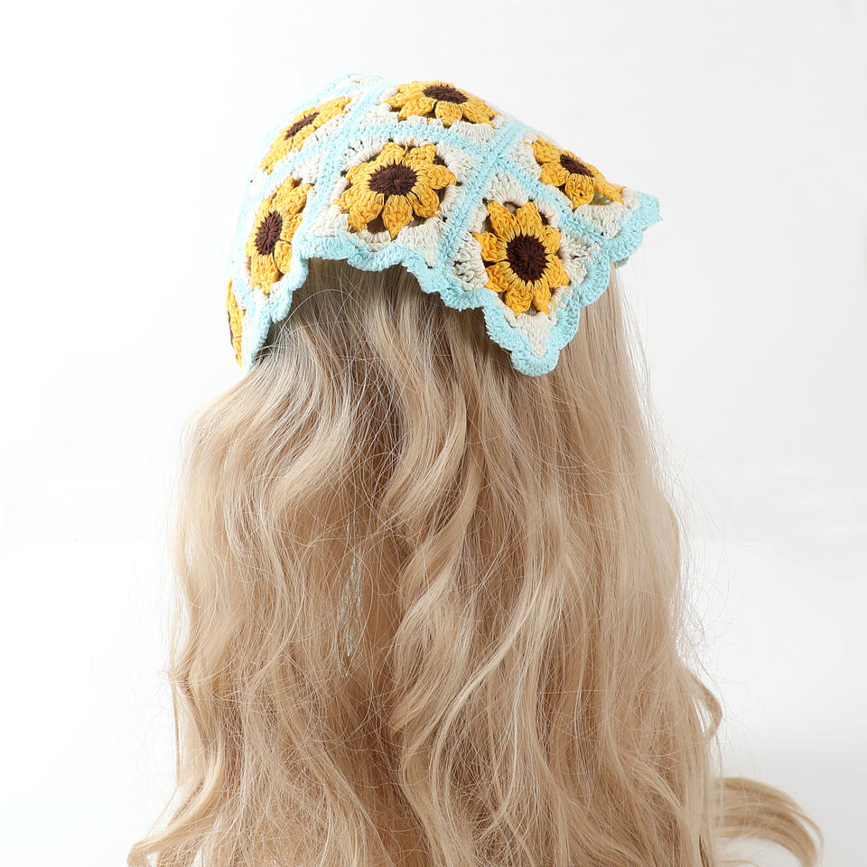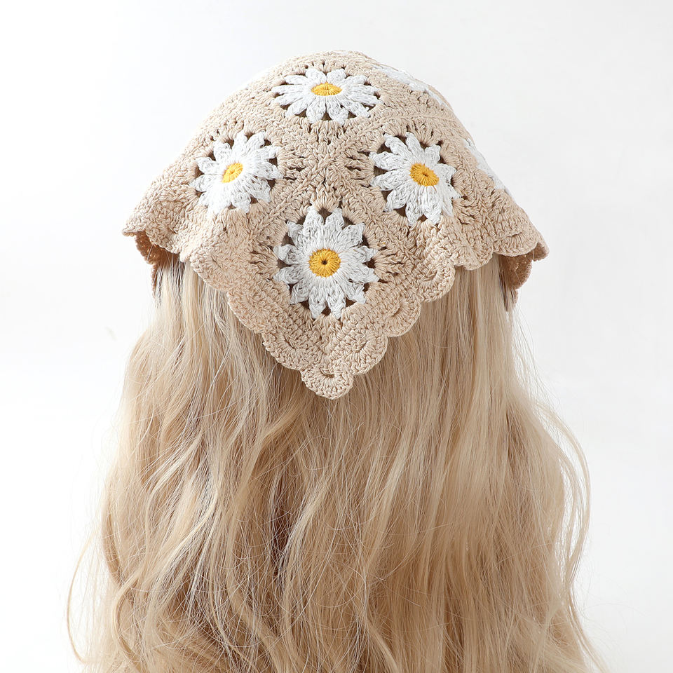 Floral Crochet Bandanas Cute Boho Hair Triangle Knitted Daisy Headband Vintage Head Kerchief for Girls