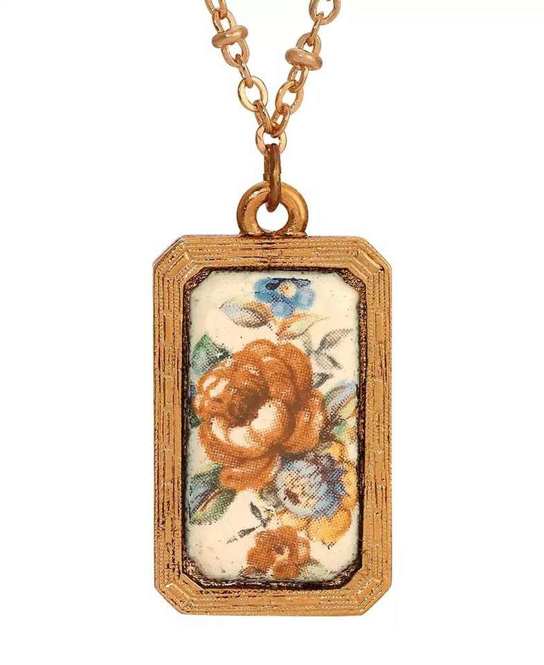 Collana con Ciondolo Rettangolare Smaltato Floreale | 2028