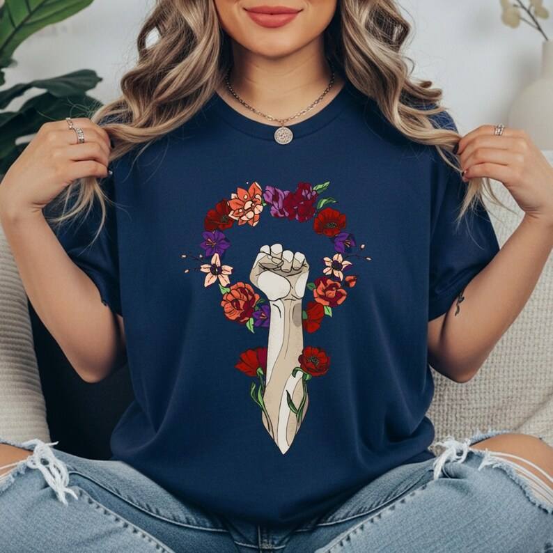 Floral Fist Women's T-Shirt Short Sleeve Crew Neck Feminist Gift International Women's Day 100% Cotton Jersey Print