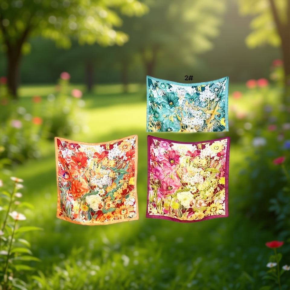 Fazzoletto Quadrato Floreale Mini 70x70Cm con Stampa Vivace per Donna Accessorio di Moda