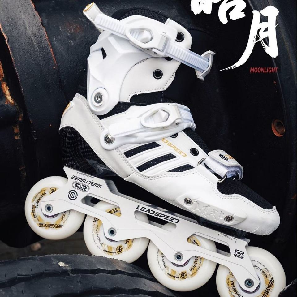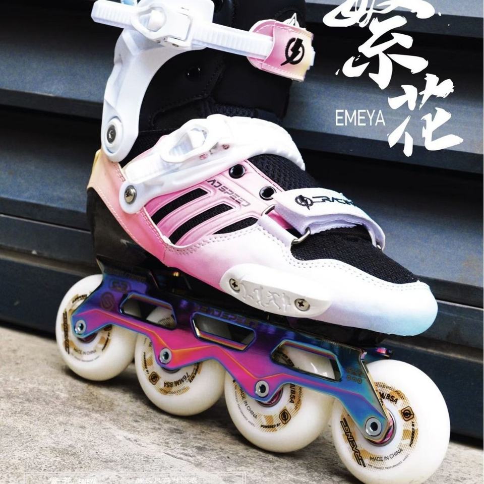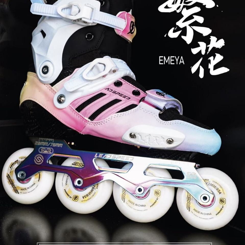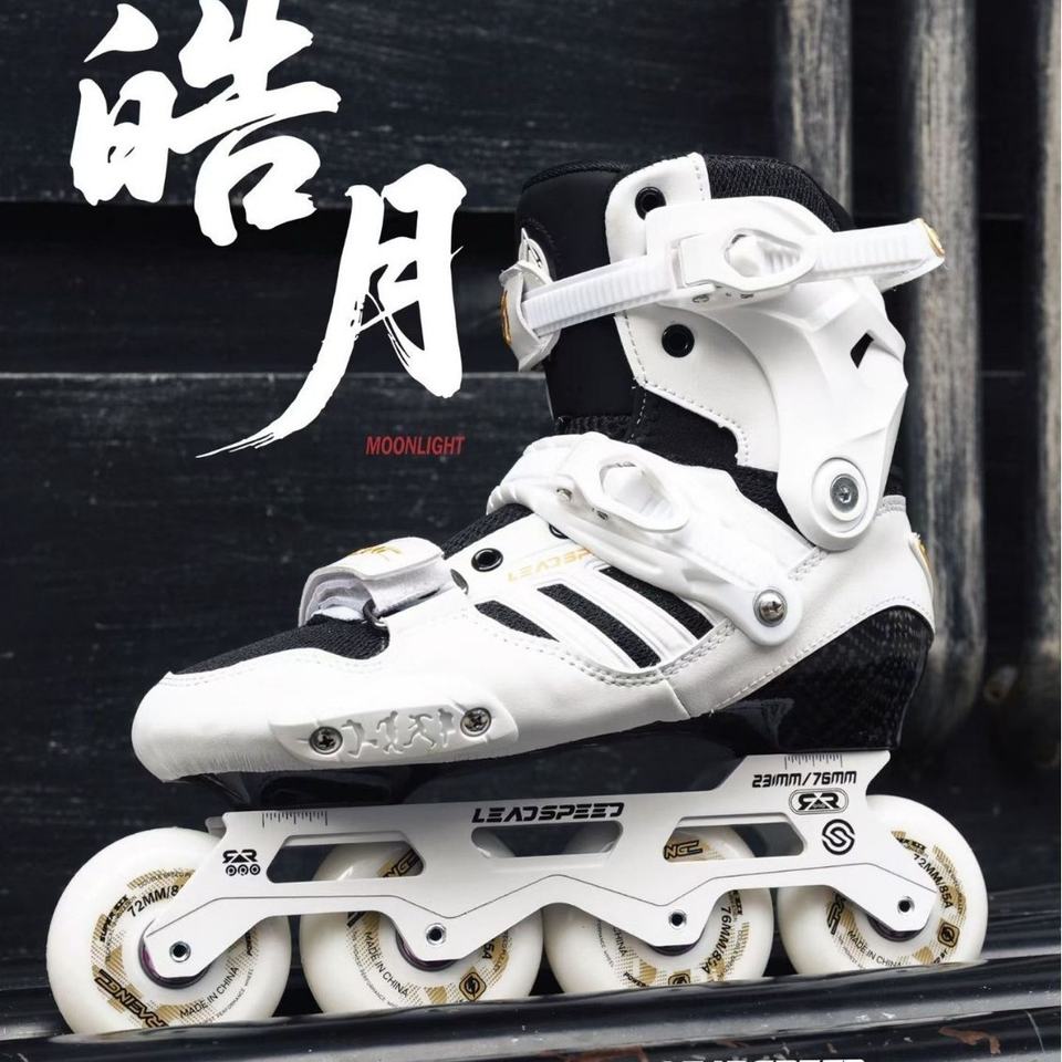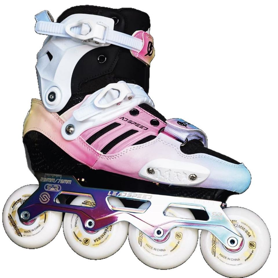 Pattini in Linea Flat con Ruote Singole in Fibra di Carbonio Moonlight Floreale, Guscio in Fibra Superfine, Colore Sfumato, Stile EVO