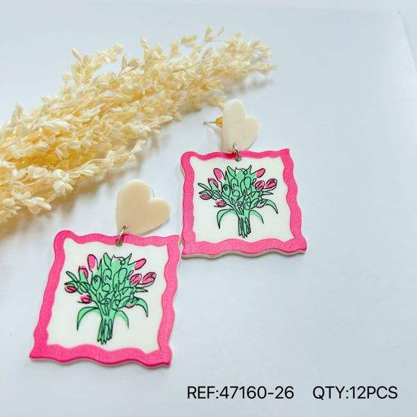 Orecchini pendenti con disegno floreale, cornice rosa, ciondolo a forma di cuore, gioielli alla moda, 12 pezzi