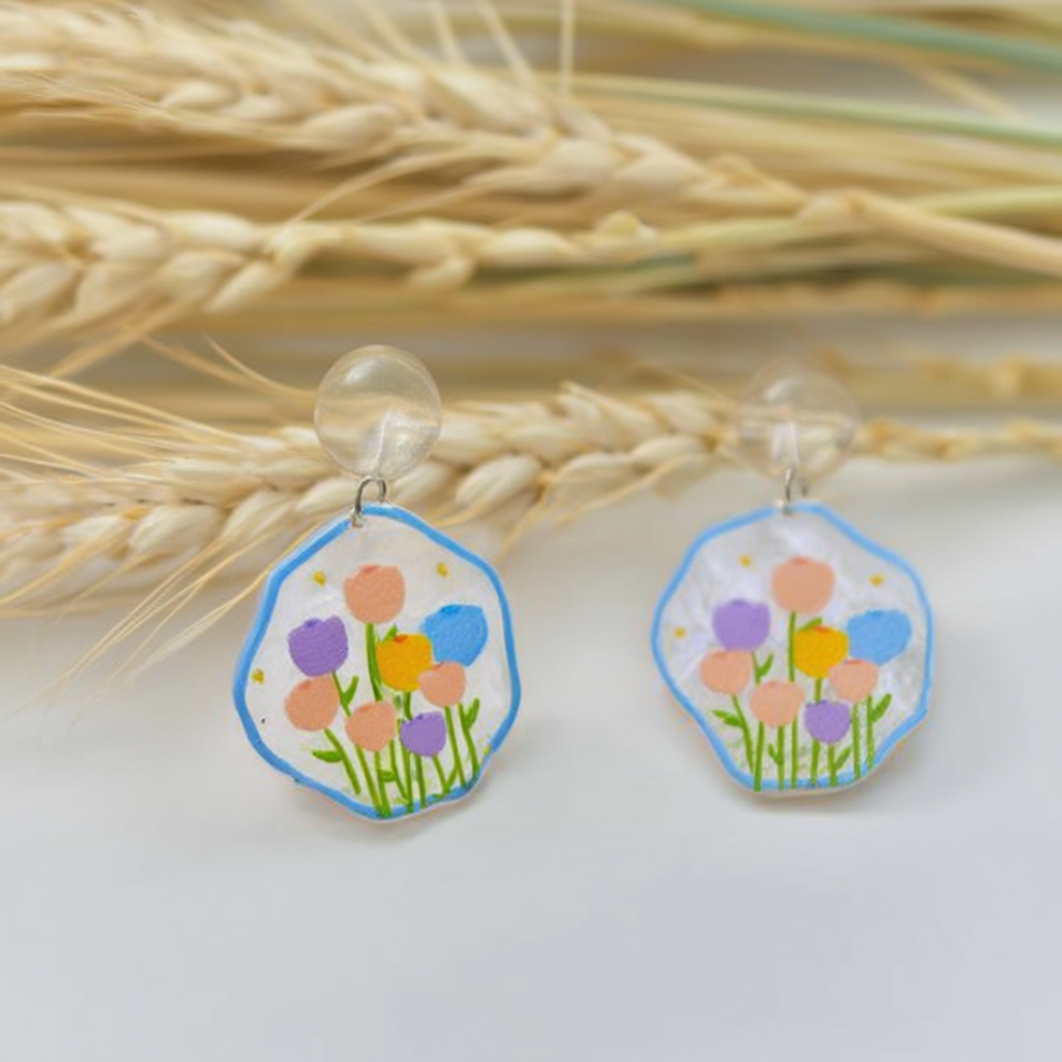 Floral Painted Earrings With Clear Bead Dangle For Women Accessories 12pcs