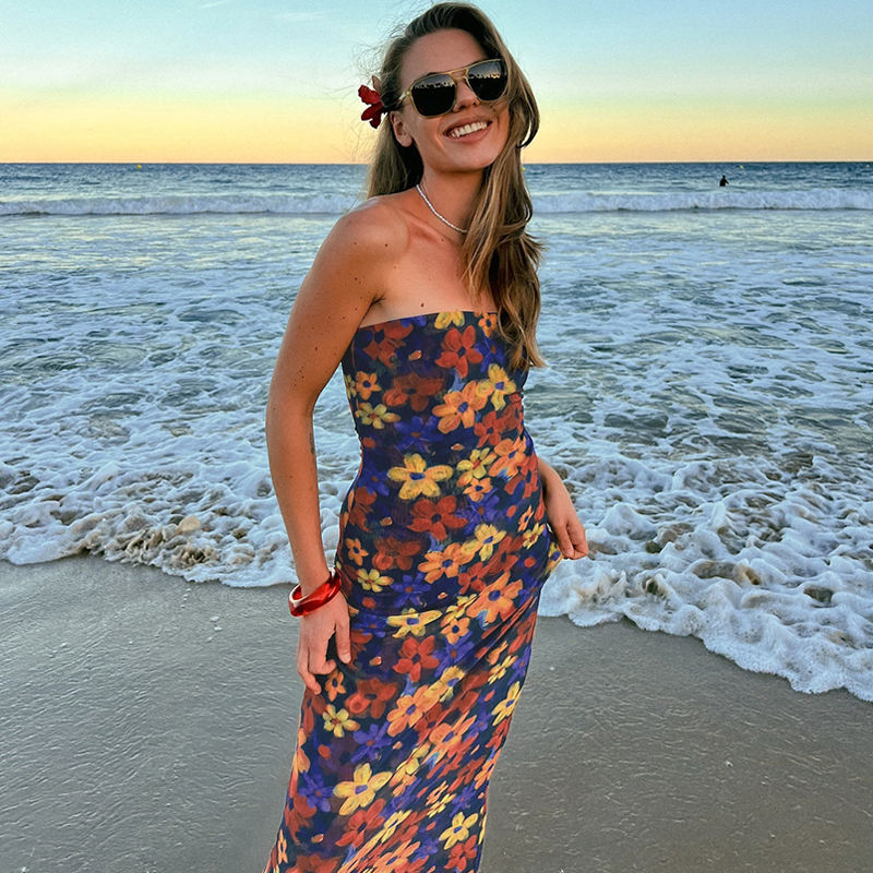 Floral Print Strapless Women'S Dresses Summer Beachwear Casual Clothing Y2K Streetwear Wholesaler Online