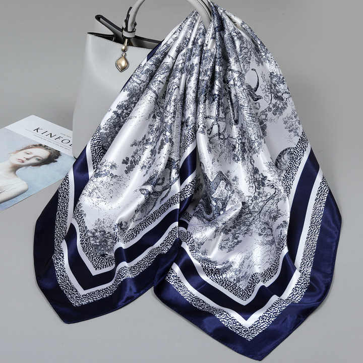 Floral Printed Imitatie Silk Neck Scarf for Women Striped Print Hijab 90cm Female Square Shawls and Wraps Scarves Foulard 2025