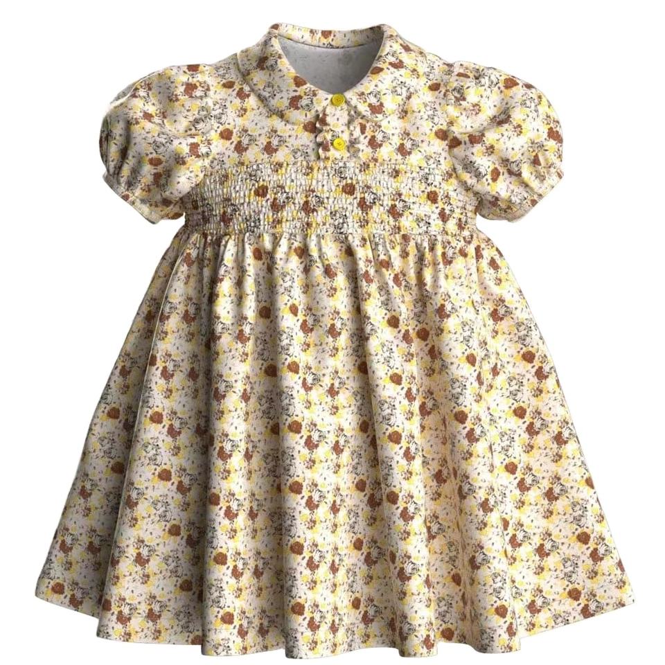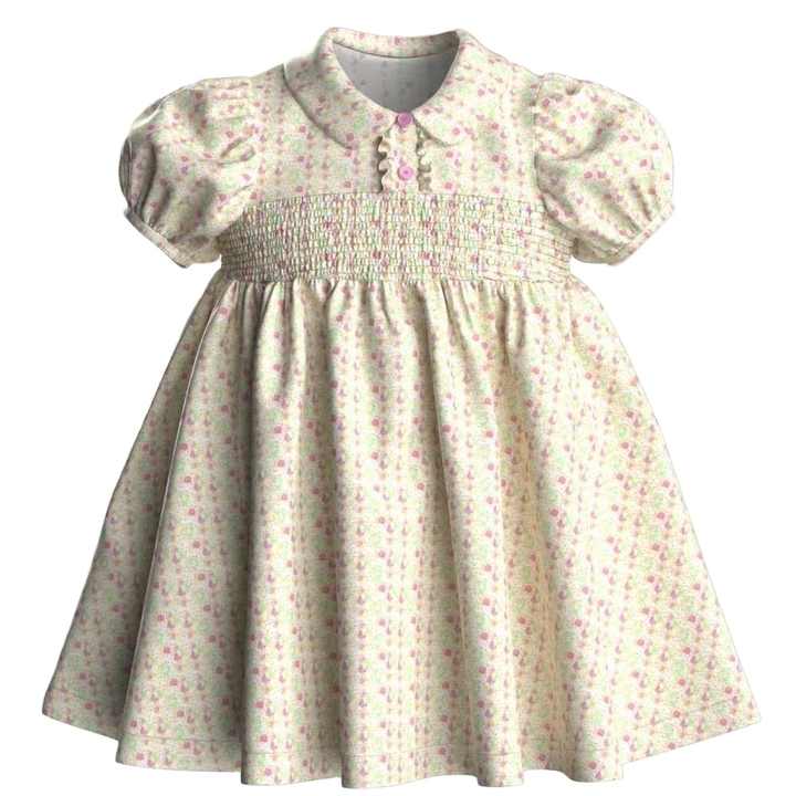 Floral Shirred Dresses for Girls New Summer Girls' Dress Lovely Puff Sleeve Sweet Princess Flower Little Girls Dress