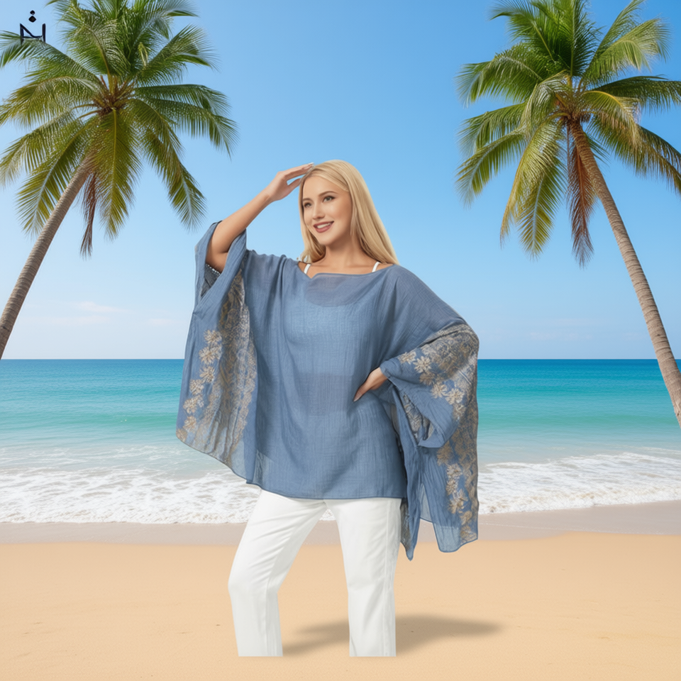 Maglione Stile Onda Floreale 135*140CM con Polsini Ricamati