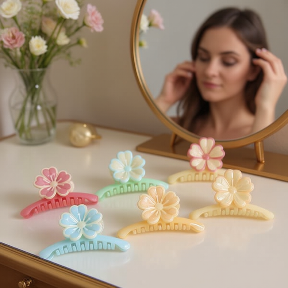 Fermagli per capelli Angelina Flower da 12 cm, stile dolce per donna, uso quotidiano, accessori per capelli in plastica di alta qualità