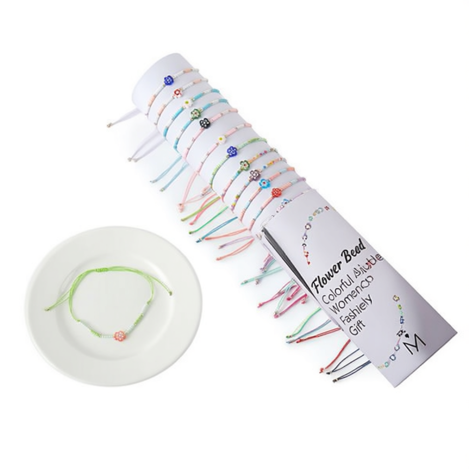 Braccialetto con Perline a Forma di Fiore, Colorato e Regolabile, Gioiello di Moda per Donne, Idea Regalo