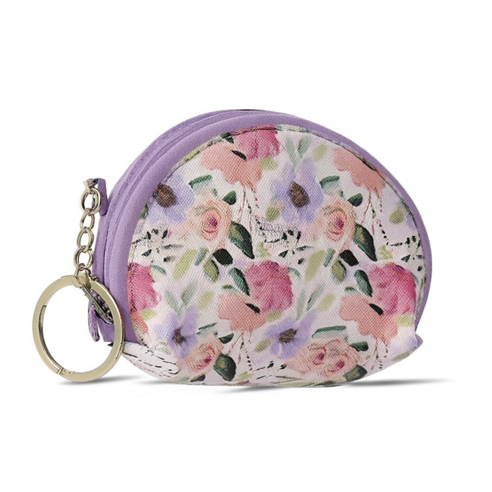 Flower Semi Circular Coin Purse 11.5x9cm With Key Ring For Women And Girls