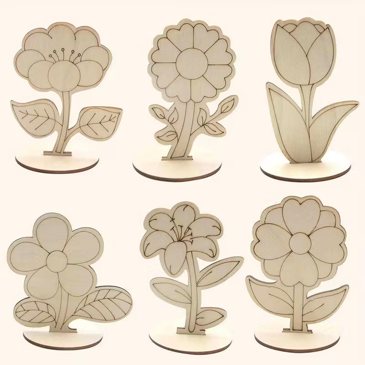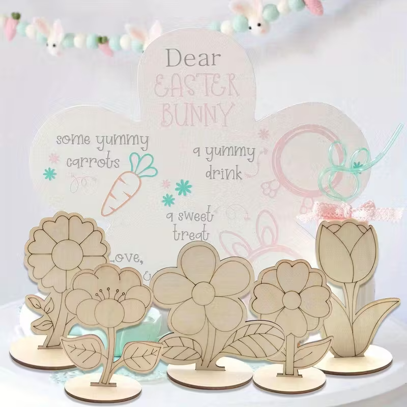 Decorazioni da Tavolo per Feste Pasquali con Fiori in Legno da Dipingere, Giocattoli DIY Stimolanti per lo Sviluppo e la Manualità
