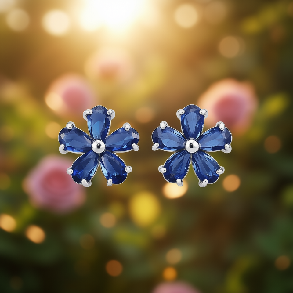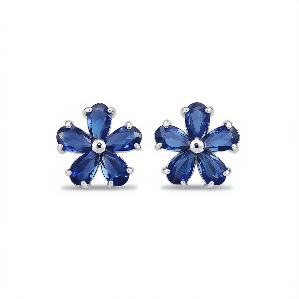 Flower Stud Earrings Sky Blue Crystal Rhinestone Silver Plated Zinc Alloy Women's Party Cute Fashion Jewelry