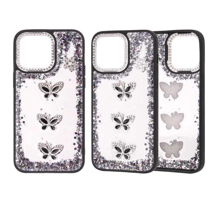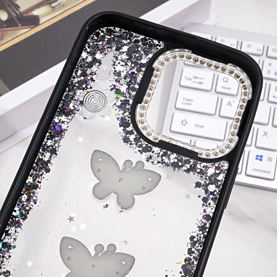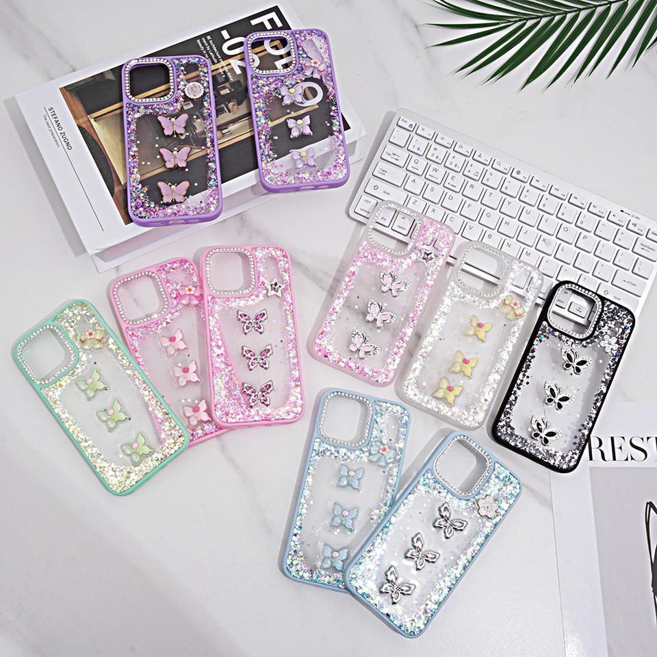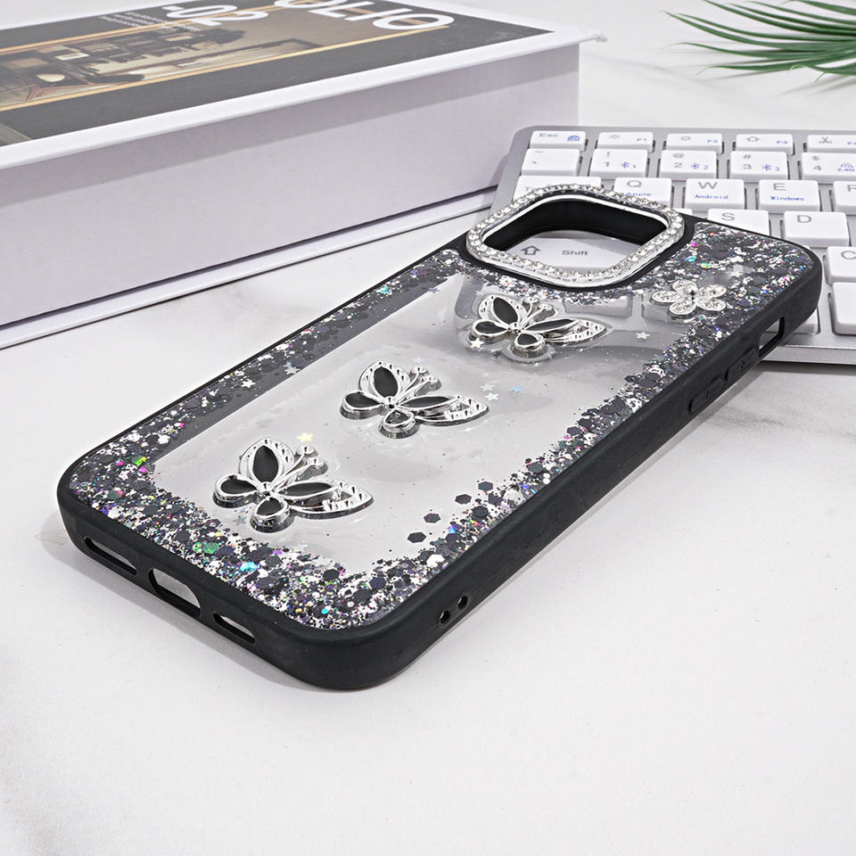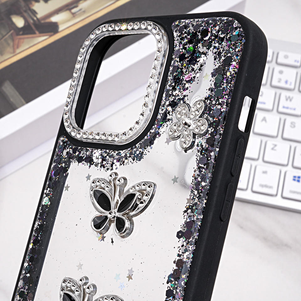 Custodia per telefono con Glitter epossidico a fiori con cornice diamantata trasparente trasparente trasparente antiurto per iPhone 17 16 15 Pro Max