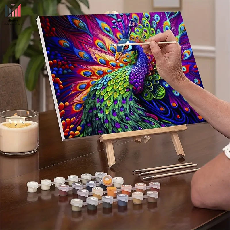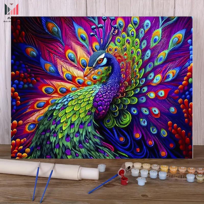 Fiori fai da te vernice con numeri Kit per adulti pavone Design con colori acrilici pittura su tela e fiore colorato per la decorazione della parete della stanza