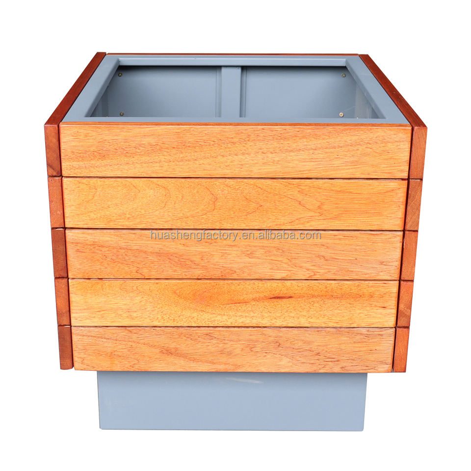 Flowers Rose Bush Planter Pot Plants Modern Outdoor Rectangular Garden Plant Galvanized Steel WPC Wood Planter Box Flower Pot