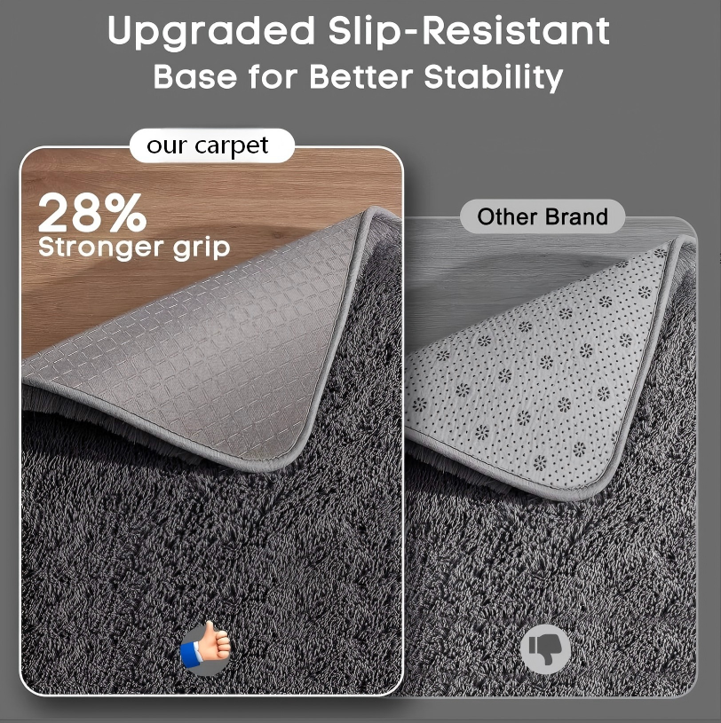 Fluffy Shaggy Soft Grey Non-Slip Bedside Small Area Rugs Set Indoor Front Entrance Mat Home Deco Shag Fuzzy Plush Carpet