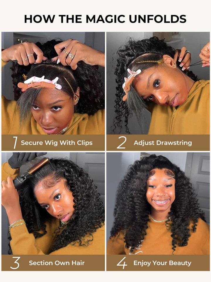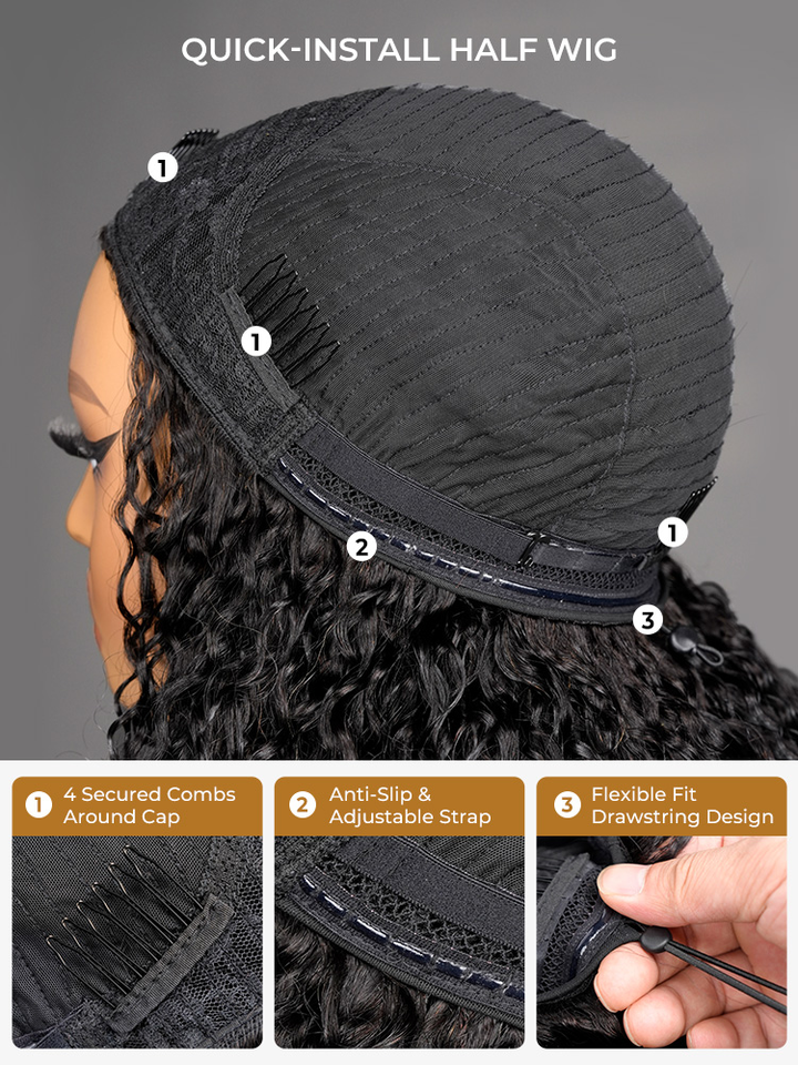Fluffy Wand 3-in-1 Half Wig with Drawstring No Lace Easy Wear Virgin Indian Remy Hair Wholesale