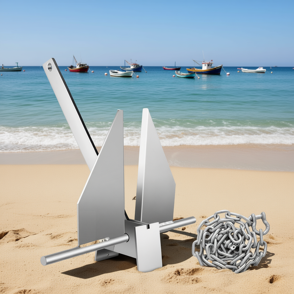 Ancora Fluke Style da 13 libbre per ormeggio nautico con catena e grillo per imbarcazioni da spiaggia da 20 a 32 piedi