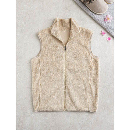 Flunder Women's Casual Outer Vest Plus Size Woven Canvas with Zipper Closure and Logo Decoration Flea Collyup M Beiges